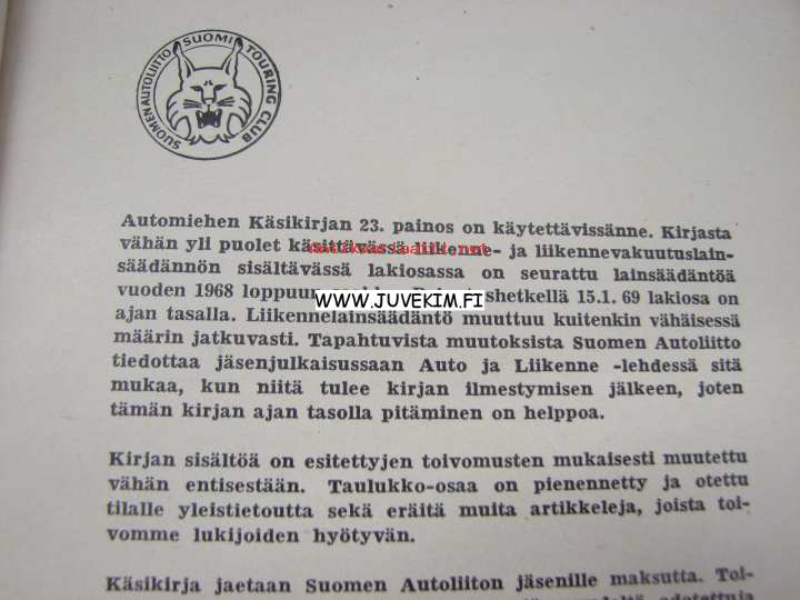 Laurila Simo, Suomen Autoliitto ry, 196912 x 20 cm kirja.