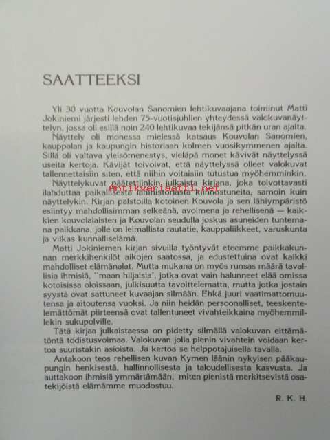 | Saatavilla | 1 kpl | | Kunto | K3 | | Kansipaperi K2 | | Sidonta/painoasu | Sidottu (kansipaperit) | | ISBN | 951-99690-3-9 | | Kielet | Suomi |