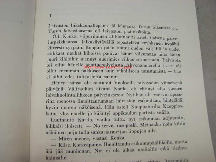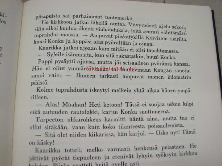 | Saatavilla | 1 kpl | | Julkaisuvuosi | 1970 | | Sivuja | 228 | | Painos | 1. | | Kunto | K3 | | Sidonta/painoasu | Sidottu (kovak.) | | Kielet | Suomi |