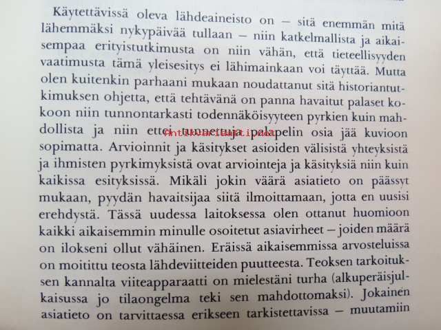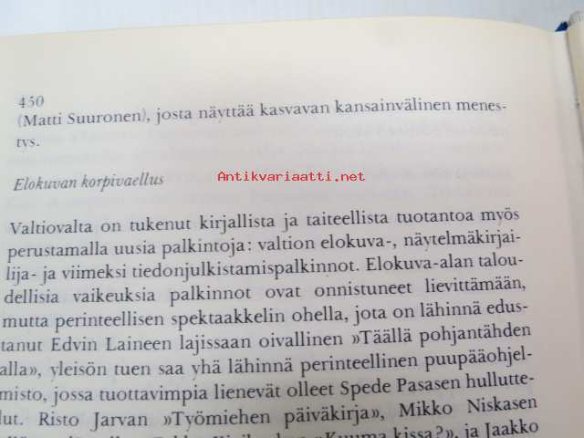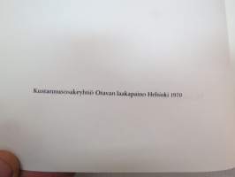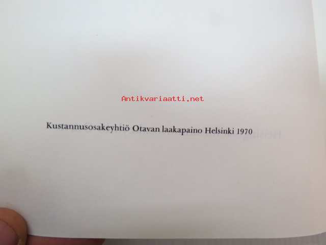 | Saatavilla | 1 kpl | | Julkaisuvuosi | 1970 | | Sivuja | 460 | | Painos | 1. | | Kunto | K3 | | Sidonta/painoasu | Sidottu (kansipaperit) | | Kielet | Suomi |