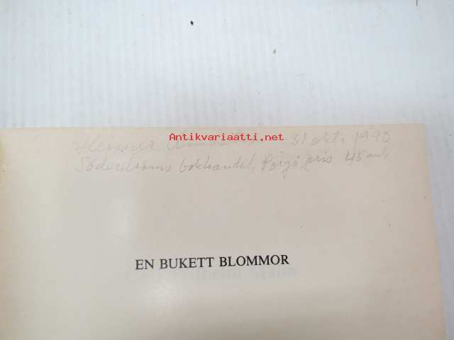 | Saatavilla | 1 kpl | | Julkaisuvuosi | 1985 | | Sivuja | 80 | | Painos | 1. | | Kunto | K3 | | Sidonta/painoasu | Nidottu (pehmeäk.) | | ISBN | 951-99633-6-7 | | Kielet | Ruotsi |