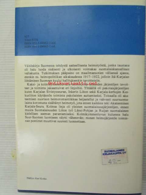 | Saatavilla | 1 kpl | | Julkaisuvuosi | 1978 | | Sivuja | 342 | | Painos | 1. | | Kunto | K3 | | Sidonta/painoasu | Sidottu (kansipaperit) | | ISBN | 951-1-04963-1 | | Kielet | Suomi |