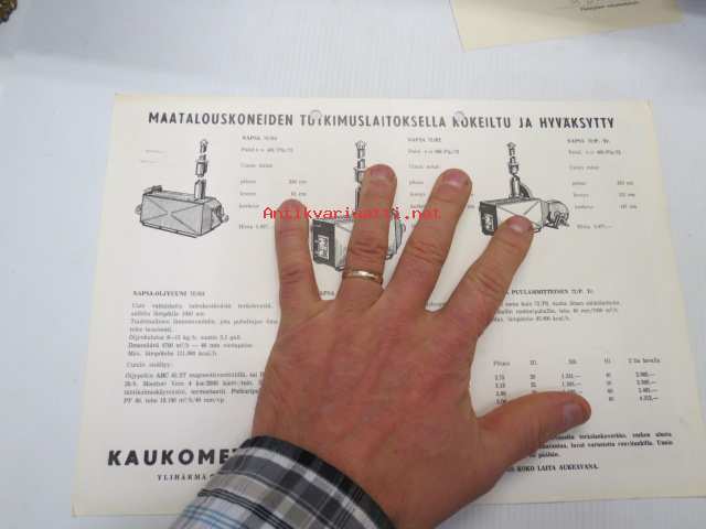 | Saatavilla | 2 kpl | | Sivuja | 2 | | Kunto | K3 | | Sidonta/painoasu | Pienpainate | | Kielet | Suomi |