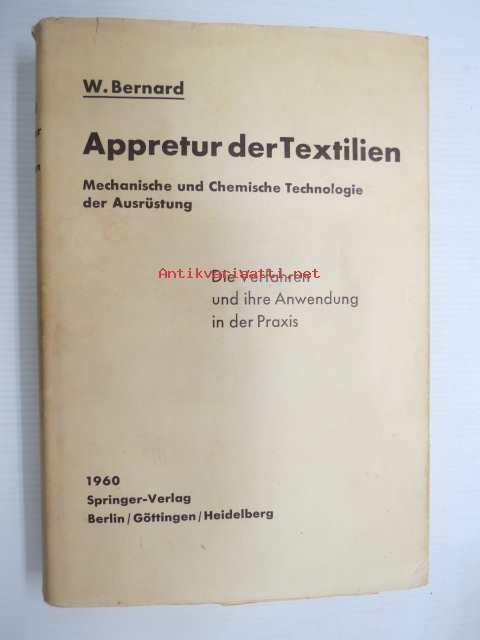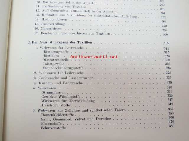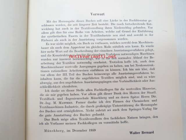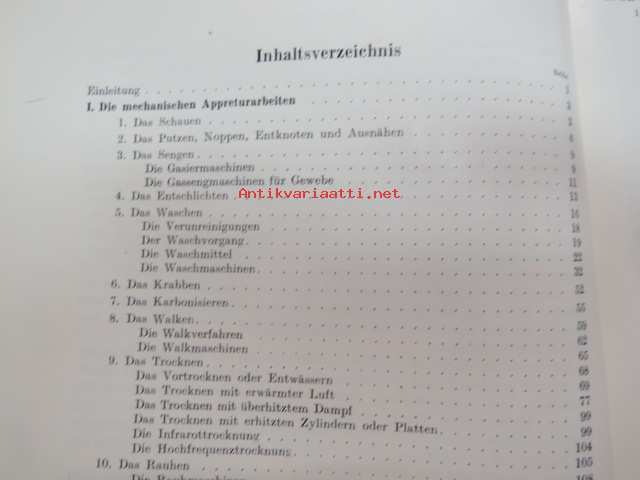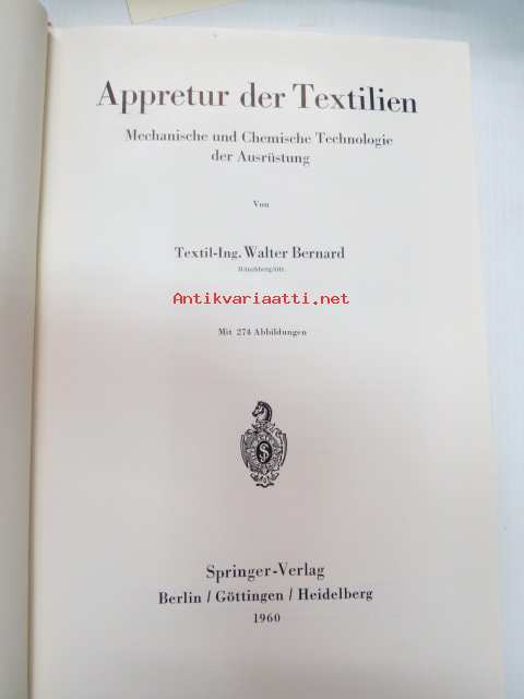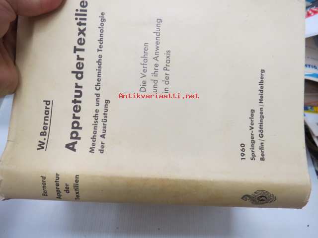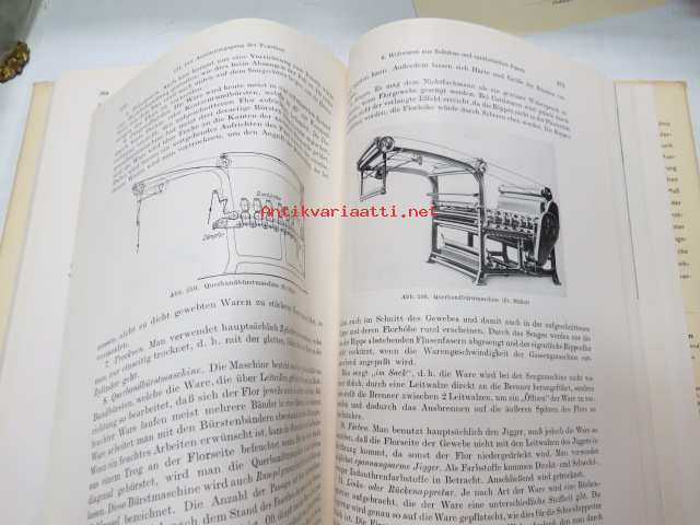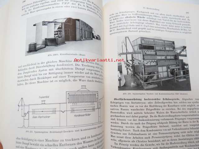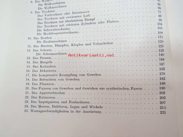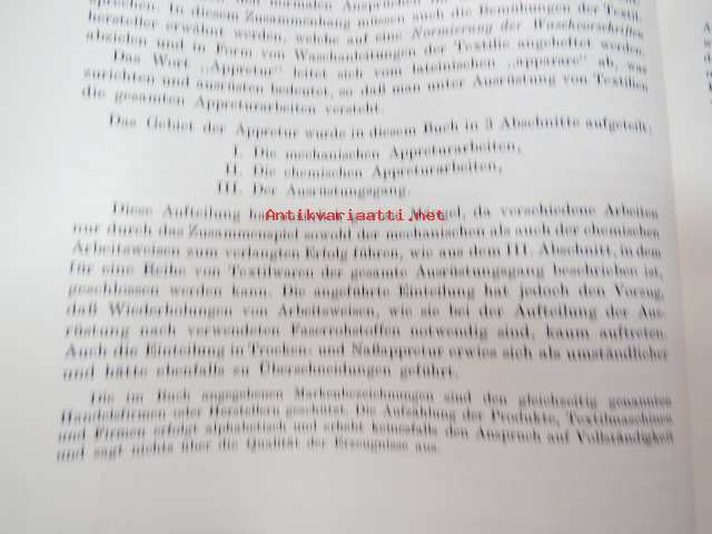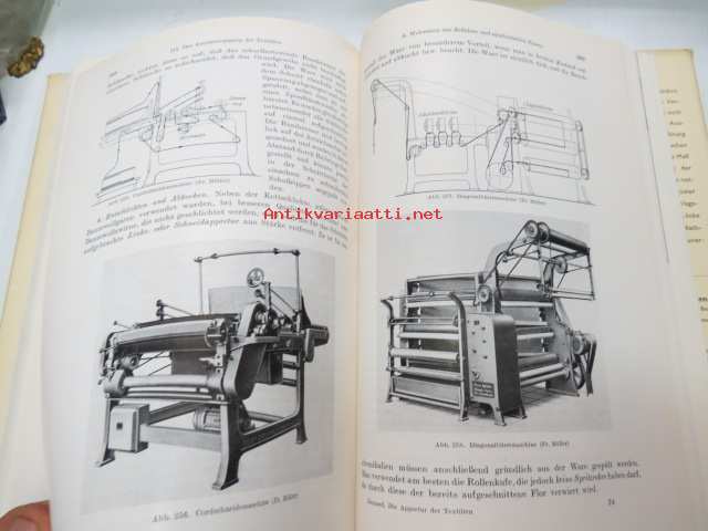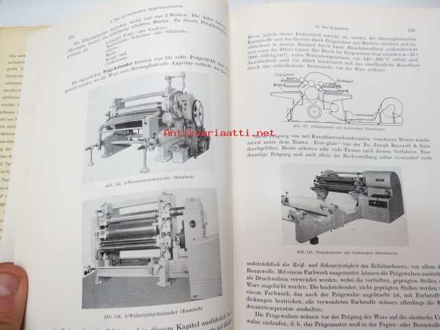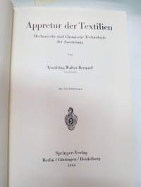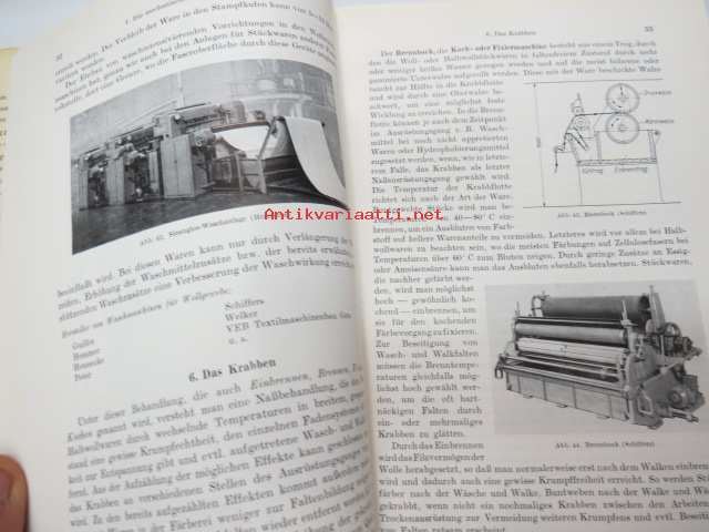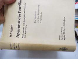 Appretur der Textilien - Mechanische und Chemische Technologie der Ausrüstung - Die Verfahren und ihre Anwendung in der Praxis -tekstiili- ja kangasteollisuuden koneiden ja laitteita ja niiden käyttöä esittelevä kirja -textile industry machines