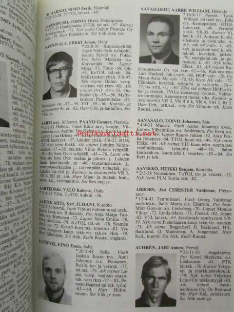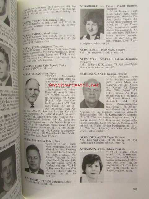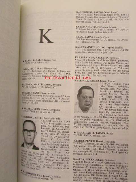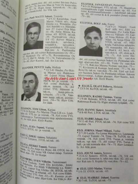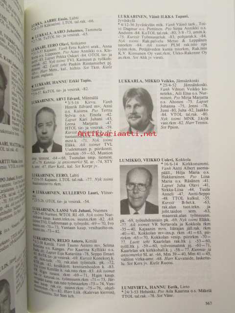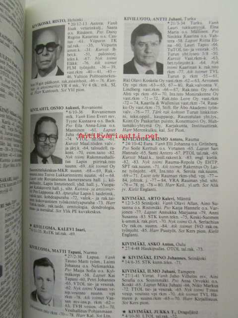 | Saatavilla | 1 kpl | | Julkaisuvuosi | 1985 | | Sivuja | 1213 | | Painos | 1. | | Kunto | K3 | | Sidonta/painoasu | Sidottu (kovak.) | | ISBN | 951-676-329-4 | | Kielet | Suomi |