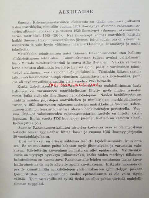 Rakennusmestarien Keskusliitto, Rakentajain Kustannus Oy, 195418 x 24 cm.
