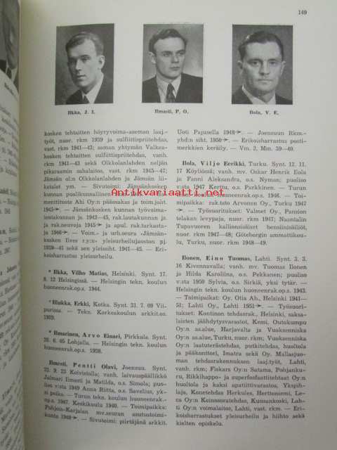 | Saatavilla | 1 kpl | | Julkaisuvuosi | 1954 | | Sivuja | 1213 | | Painos | 1. | | Kunto | K3 | | Sidonta/painoasu | Sidottu (kovak.) | | ISBN | 951-676-329-4 | | Kielet | Suomi |