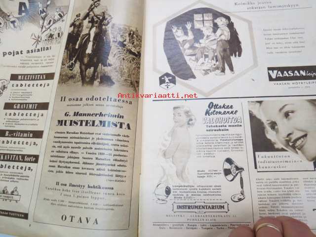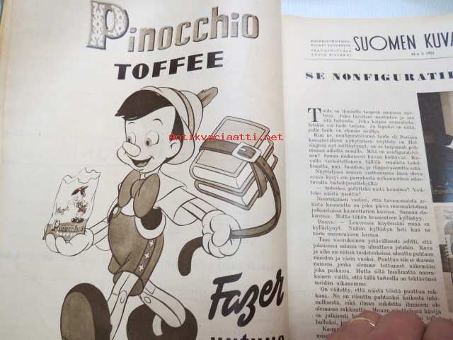 Suomen Kuvalehti 1952 nr 5, ilmestynyt 2.2.1952, sis. mm. seur. artikkelit / kuvat / mainokset; Kansikuva "Pieni soittaja", Fazer Pinocchio toffee, Marsalkan
