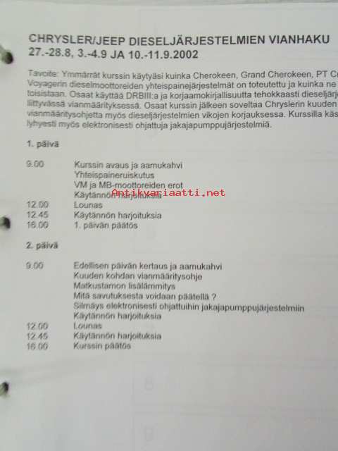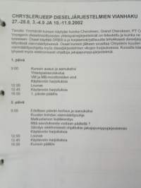 Chrysler Jeep Dieseljärjestelmien vianhaku 27.-28.8 / 3.-4.9. / 10.-11.9. 2002