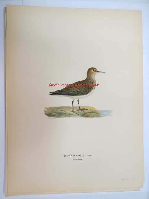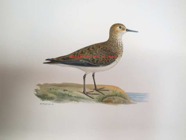 Lapinsirri - mosnäppa -Svenska fåglar, von Wright, 1927-29, painokuva -print