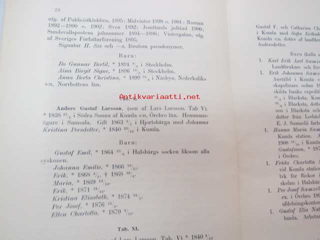 Anteckningar om Släkten Samzelius (nr 2 / 25 ex.) -family book, genealogy