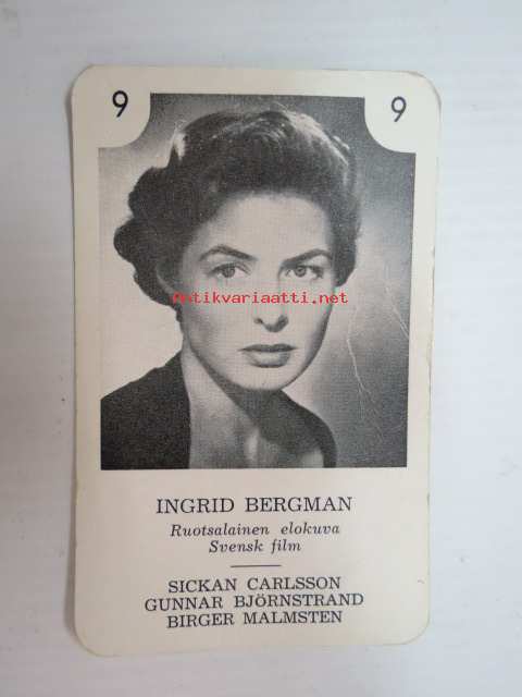 Ingrid Bergman / Ruotsalainen elokuva - Svensk film -filmitähti-korttipelin kuva / pelikortti -moviestars / playing cards -picture