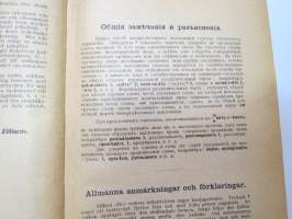 | Saatavilla | 1 kpl | | Julkaisuvuosi | 1916 | | Sivuja | 495 | | Painos | 1. | | Kunto | K3 | | Sidonta/painoasu | Sidottu (kovak.) | | Kielet | Ruotsi, Venäjä |