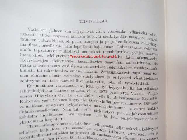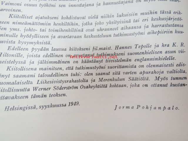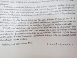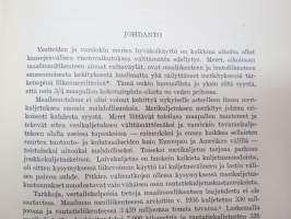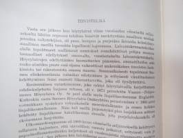| Saatavilla | 1 kpl | | Julkaisuvuosi | 1949 | | Sivuja | 314 | | Painos | 1. | | Kunto | K2 | | Sidonta/painoasu | Sidottu (kovak.) | | Kielet | Suomi, Englanti |