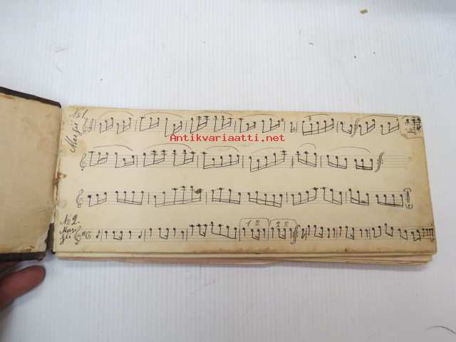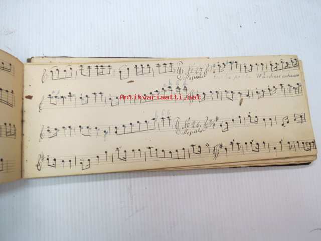 Nuottikirjaa klarinetillaa J: A: Helenius 10.6.1892 -klarinettia soittaneen kansanmiehen käsinkirjoitettu nuottikirja -handwritten clarinetists note book - common
