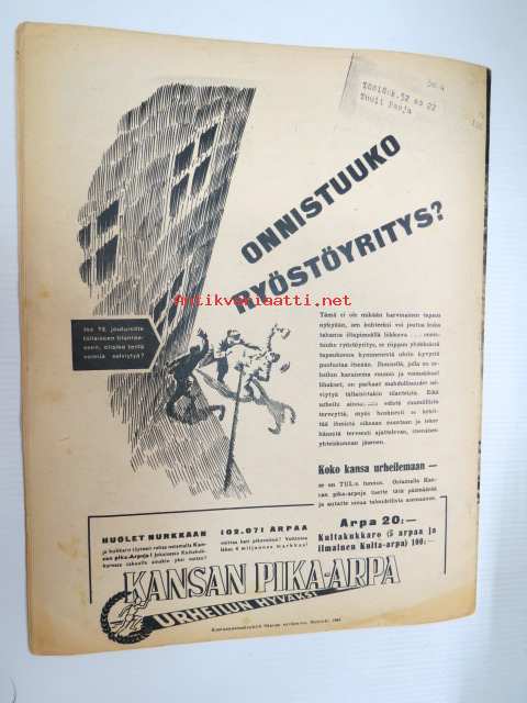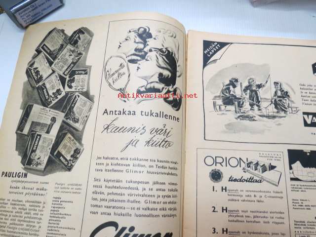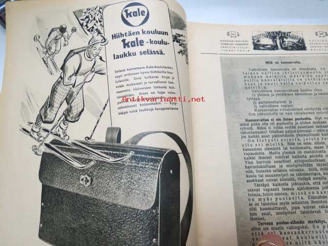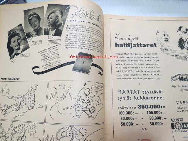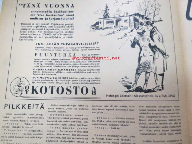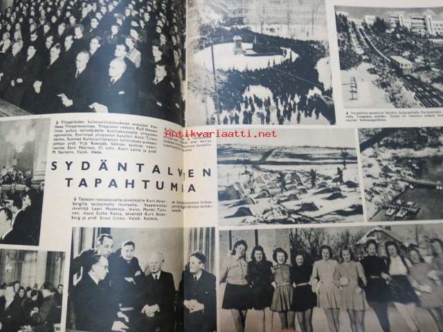 Suomen Kuvalehti 1945 nr 7, ilmestynyt 17.2.1945, sis. mm. seur. artikkelit / kuvat / mainokset; Kansikuva "Metsätyöt ovat parhaassa käynnissä", Omat koirat