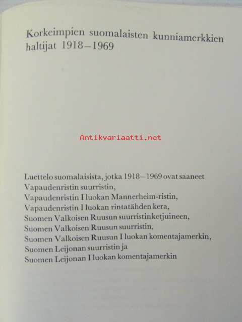 Korkeimpien suomalaisten kunniamerkkien haltijat 1918-1969