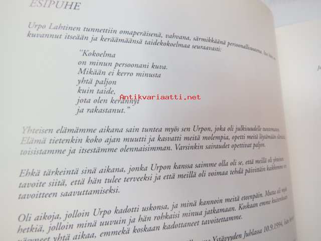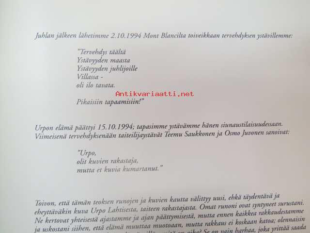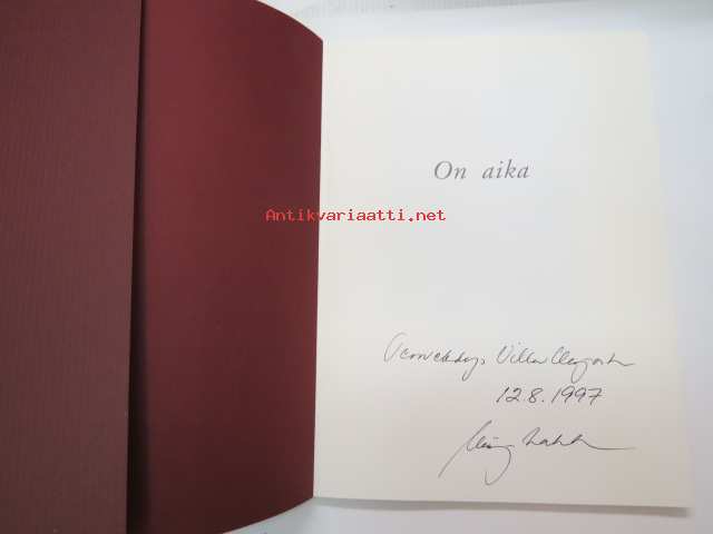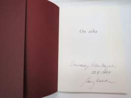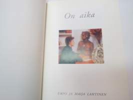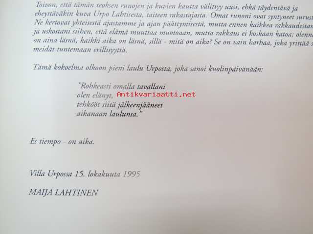 On aika -Maija Lahtisen teos pulisonsa Urpo Lahtisen muistoksi - kuvia Villa Urpon taideteoksista ja Maija Lahtinen -runoja, omakätinen omiste ja nimikirjoitus -book of art collectiones of Urpo Lahtinen and poems of his wife -signed and dedicated