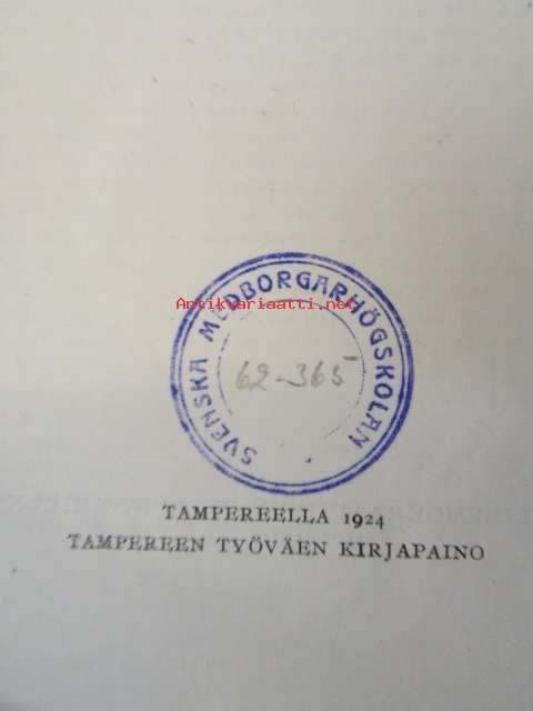 | Saatavilla | 1 kpl | | Julkaisuvuosi | 1924 | | Sivuja | 688 | | Kunto | K2 | | Sidonta/painoasu | Sidottu (kovak.) | | Kielet | Suomi |