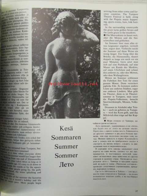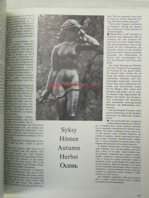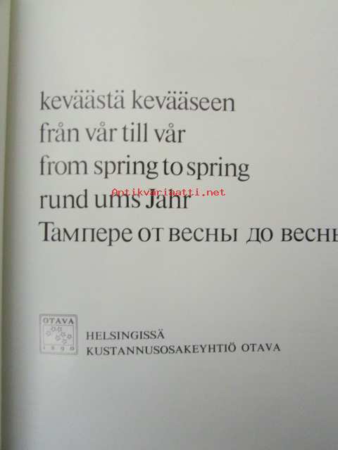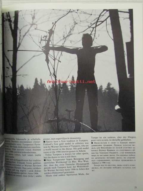 | Saatavilla | 1 kpl | | Julkaisuvuosi | 1983 | | Sivuja | 120 | | Painos | 1 | | Kunto | K3 | | Kansipaperi K2 | | Sidonta/painoasu | Sidottu (kansipaperit) | | ISBN | 951-1-07285-4 | | Kielet | Suomi, Ruotsi, Englanti, Saksa, Venäjä |