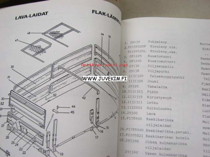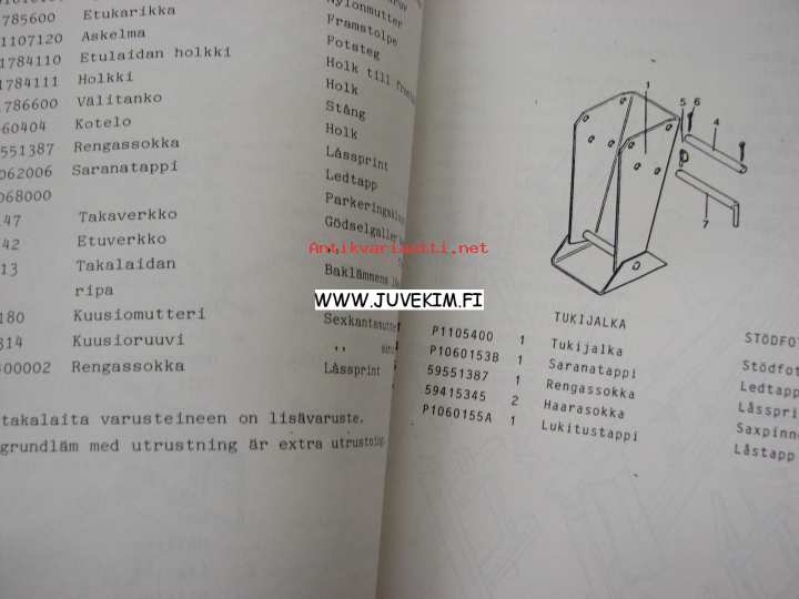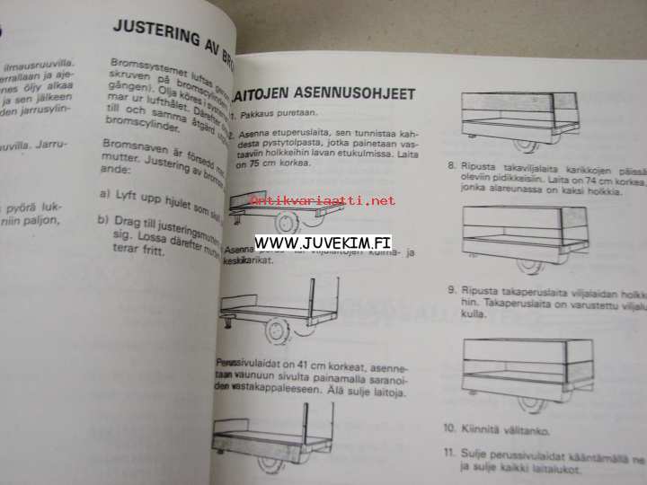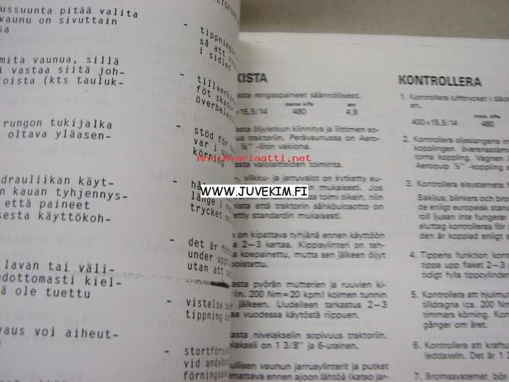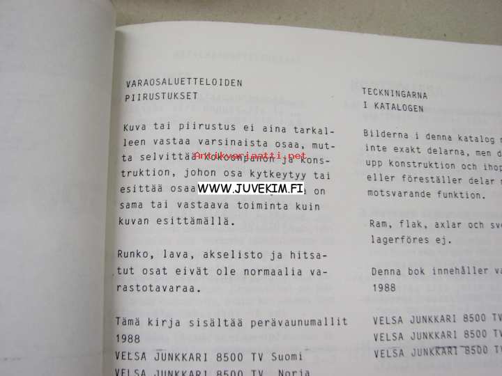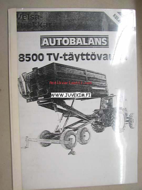 Velsa-Junkkari Autobalans 8500 TV-täyttövaunu -käyttöohjekirja ja varaosaluettelo
