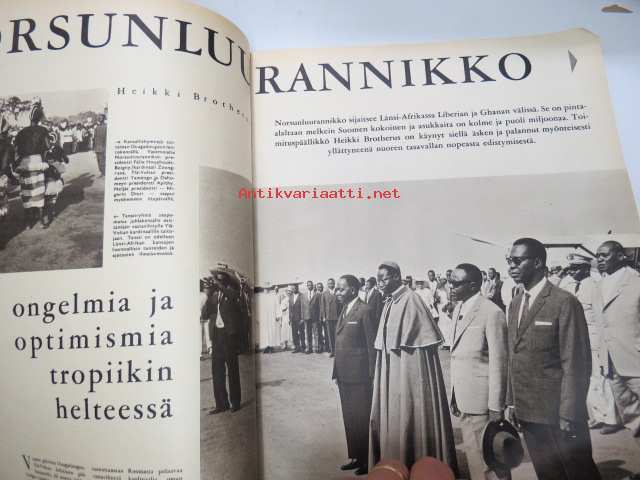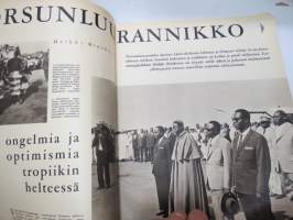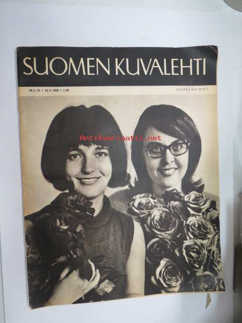 Suomen Kuvalehti 1965 nr 21, ilmestynyt 22.5.1965, sis. mm. seur. artikkelit / kuvat / mainokset; Kansikuva "Seppelneidot", Maan vanhimmat identtiset kaksoset Hilja Repo os. Kranck & Impi Tikkanen os. Kranck 80-vuotispäivät, Norsunluurannikko, Pitsiä, Piispa Hannes Leinonen, Ilomantsi, ym. -weekly magazine