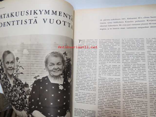 Suomen Kuvalehti 1965 nr 21, ilmestynyt 22.5.1965, sis. mm. seur. artikkelit / kuvat / mainokset; Kansikuva "Seppelneidot", Maan vanhimmat identtiset kaksoset Hilja