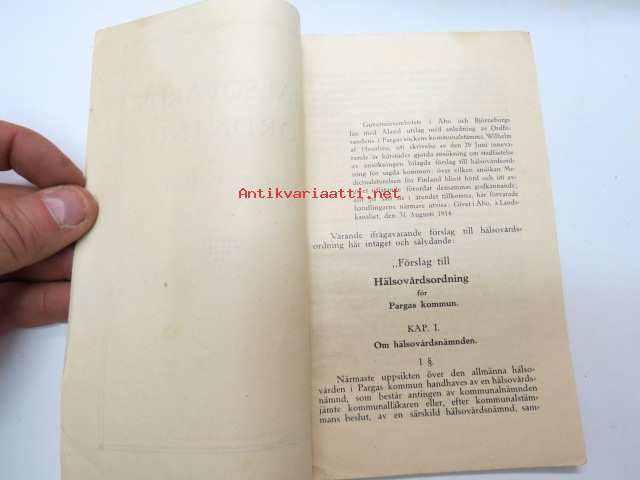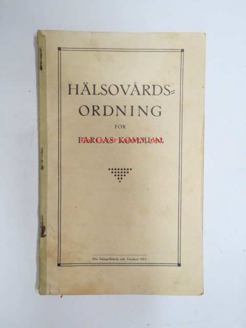 Hälsovårdsorning för Pargas kommun 1914 -Paraisten kunnan terveydenhuolto-ohjesääntö / health care rules for Parainen / Pargas parish