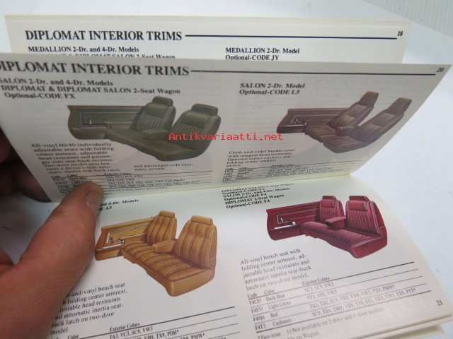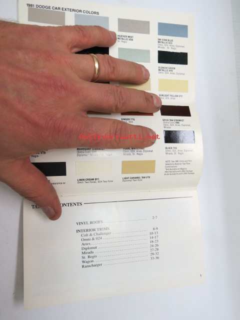 Dodge 1981 color & Trim Selector -väri- ja sisustusmallit valintaopas