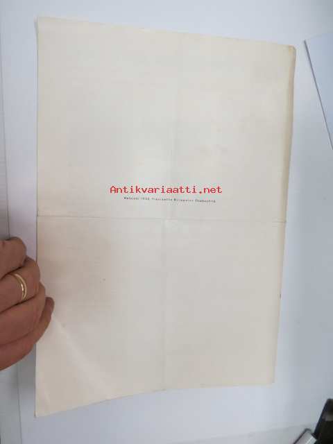 | Saatavilla | 1 kpl | | Julkaisuvuosi | 1938 | | Sivuja | 4 | | Kunto | K2 | | Sidonta/painoasu | Pienpainate | | Kielet | Suomi |