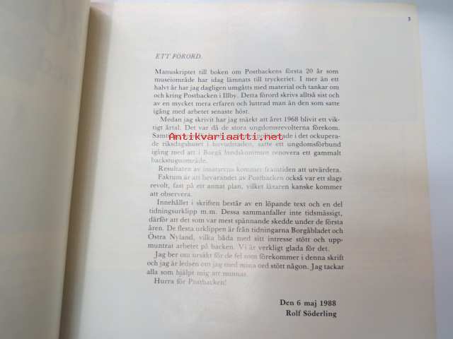20 år med Postbacken 1968-1988 - En berättelse om hur ett ungdomsförbund med sin verksamhet räddade ett hotat backstuguområde (i Illby) -local history