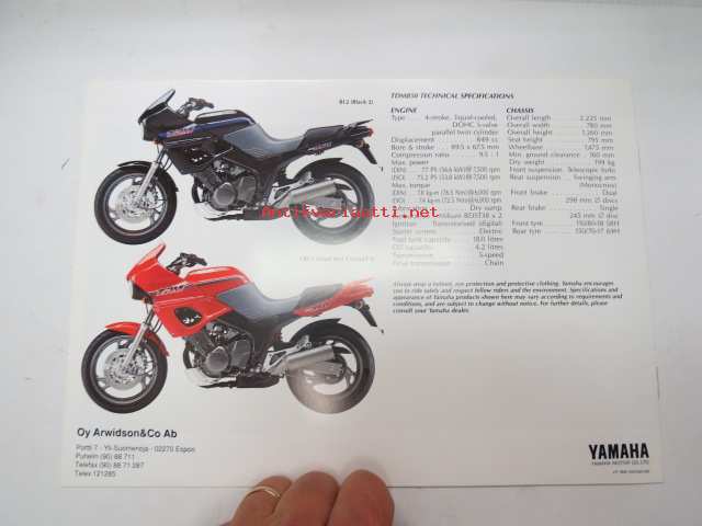 Yamaha TDM850 -sales brochure / myyntiesite
