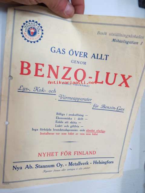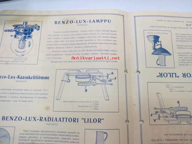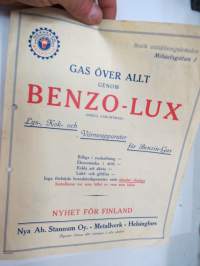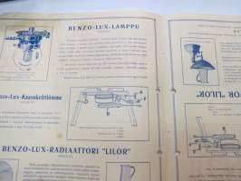 Benzo-Lux - bensiinikaasukäyttöiset valaisimet - keittimet - lämmittimet / benzin-gas värmeapparater - lys- och kokapparater -myyntiesite / sales brochure
