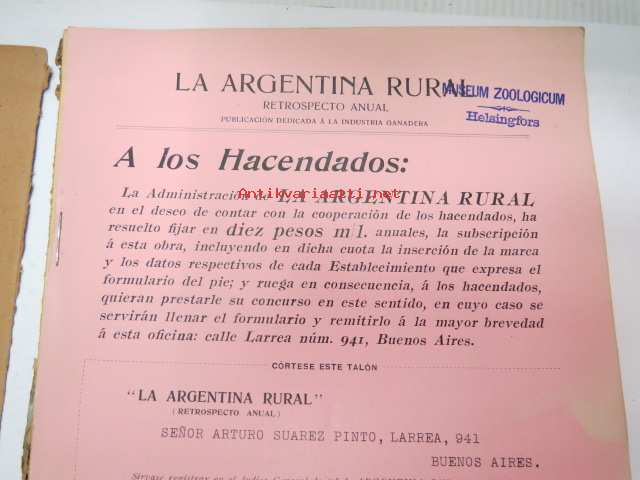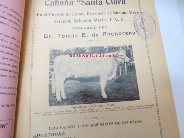 La Argentina Rural Retrospecto Anual 1910 - Argentiinan maaseudun / maanviljelyksen / karjankasvatuksen vuosikirja, sisltää mm. siitoseläinten kuvia, eri karjatilojen merkkikokoelman ym. -annual of argentinian agriculture