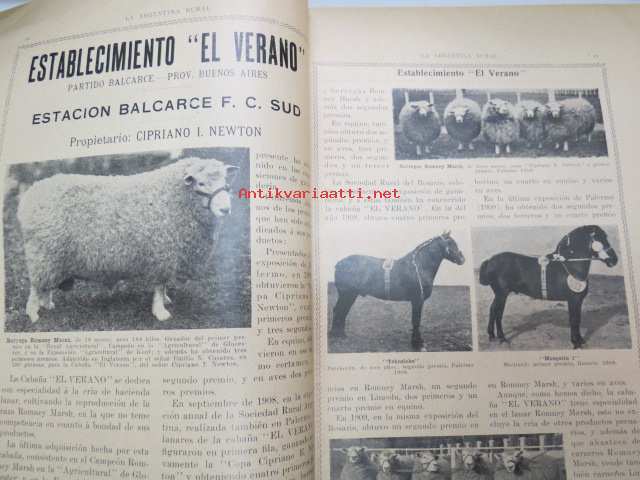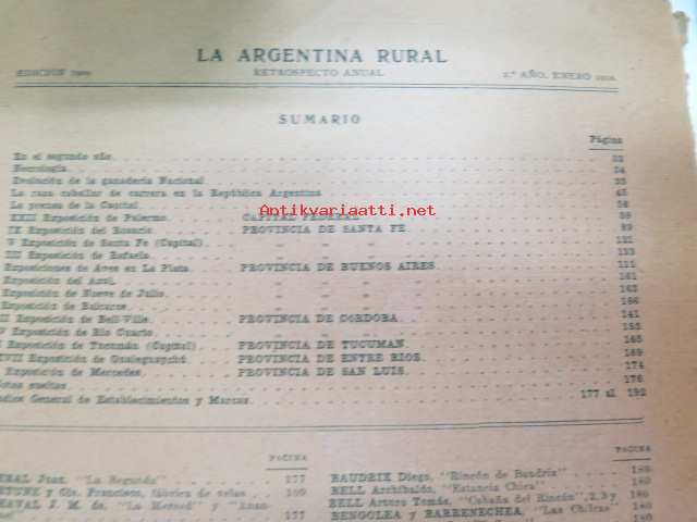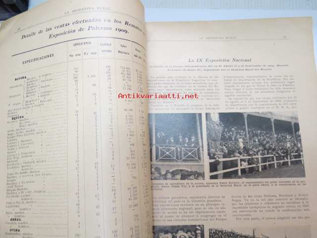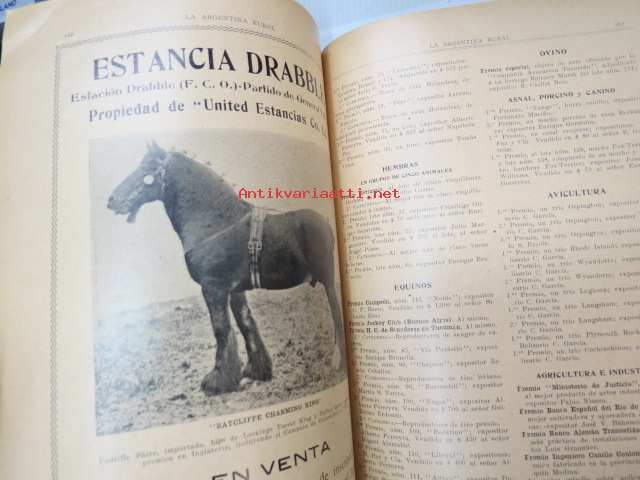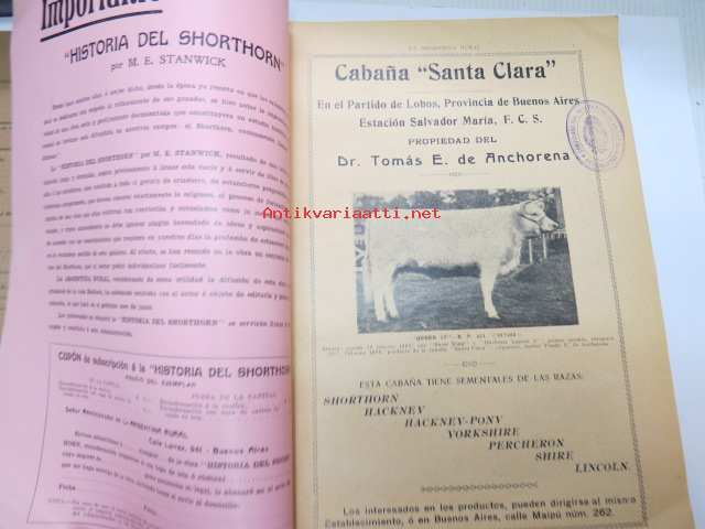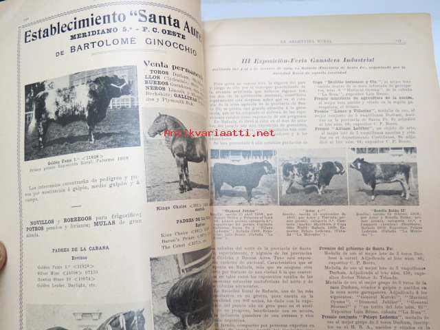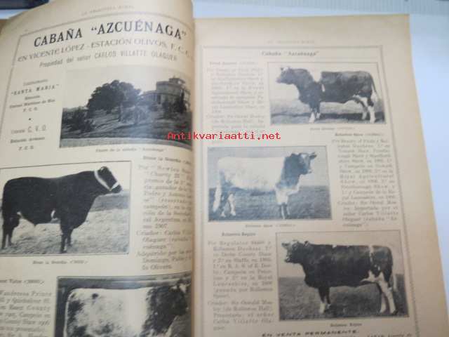 La Argentina Rural Retrospecto Anual 1910 - Argentiinan maaseudun / maanviljelyksen / karjankasvatuksen vuosikirja, sisltää mm. siitoseläinten kuvia, eri