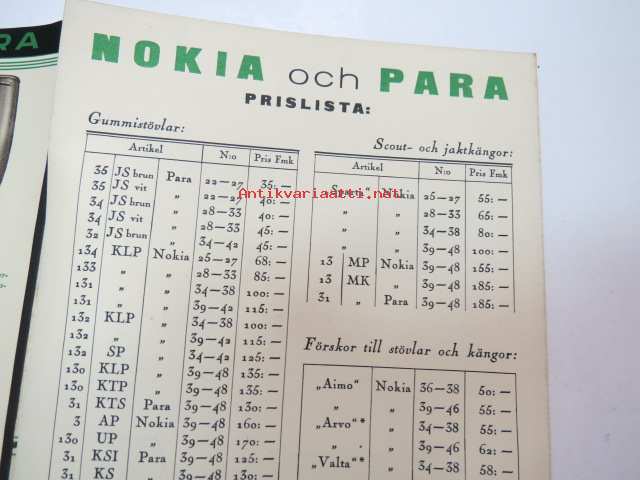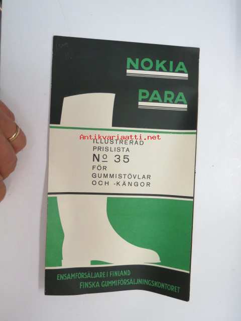 Nokia Para Gummistövlar och -gängor Illustrerad prislista nr 35 - ensamsäljare i Finland Finska Gummiförsäljningskontoret -kuvasto / catalog