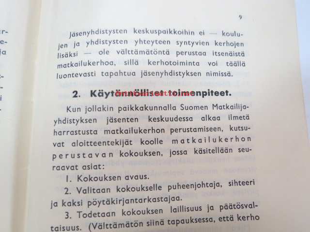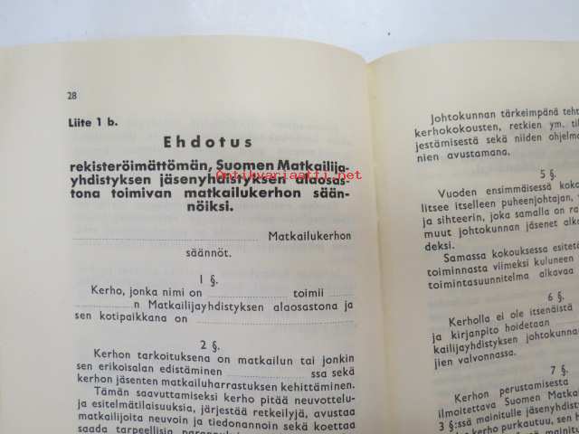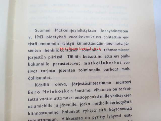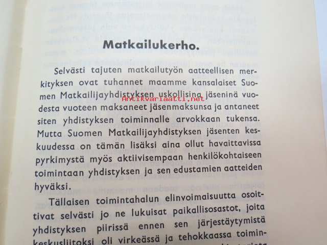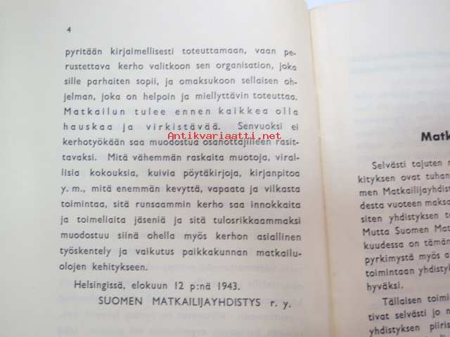 Matkailukerho - Suomen Matkailijayhdistys 1943 -ohjeita ja neuvoja matkailukerhon perustamiseen paikkakunnalle -guidines and rules for travel clubs