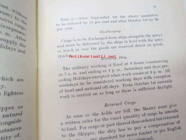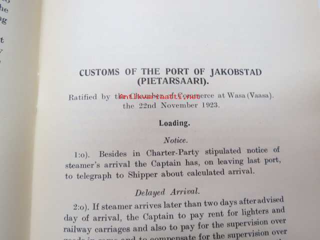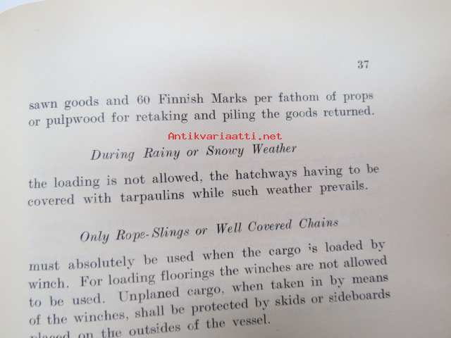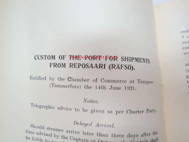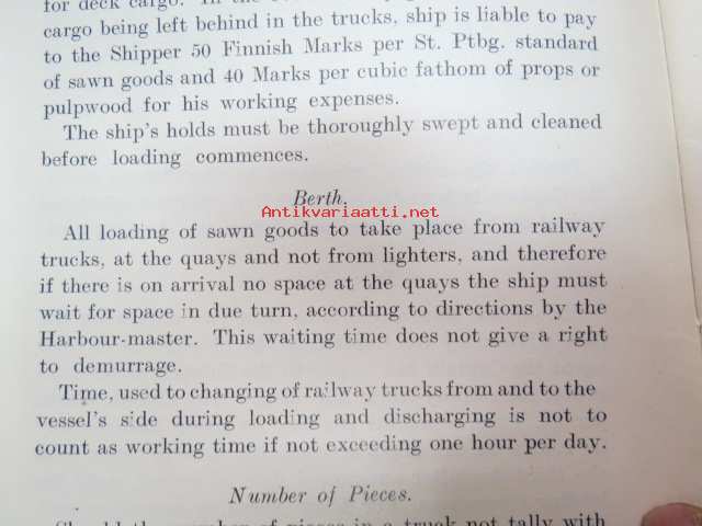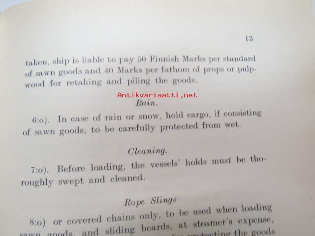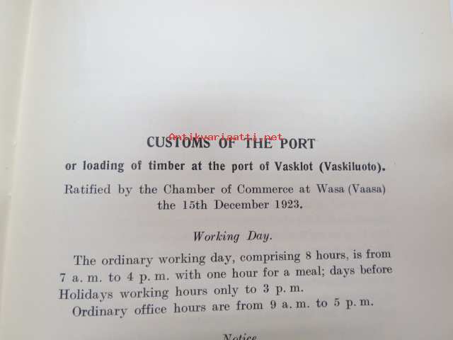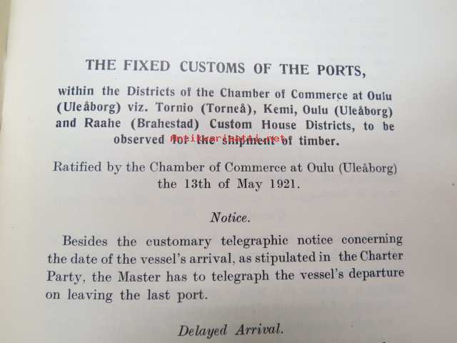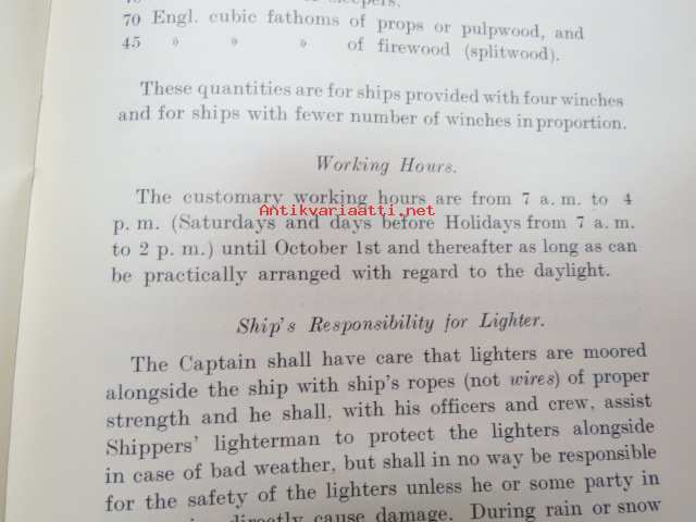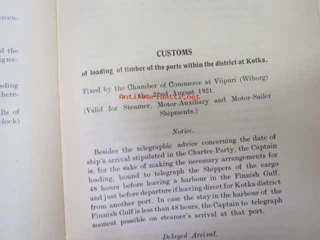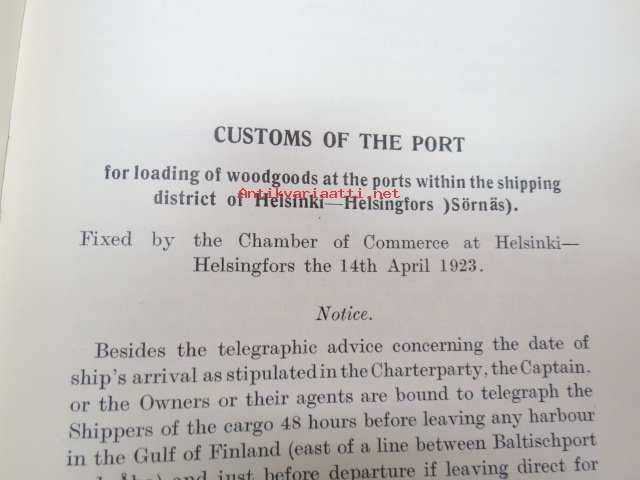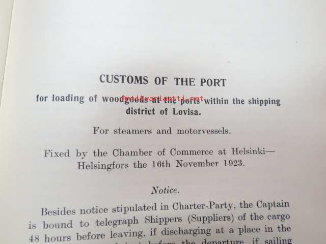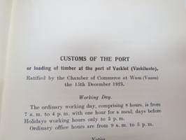 Customs of the ports - for loading of woodgoods - in Finland -Suomen satamissa noudatettavat, satamittain ja lastausalueittain vaihtelevat tavat, taksat,