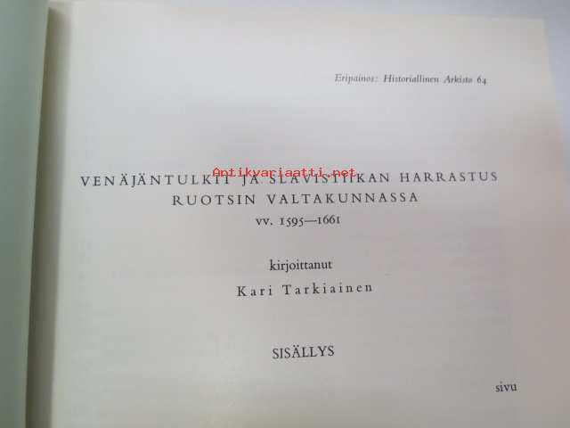 Kari Tarkiainen, 196915 x 20 cm. Eripainos Historiallinen Arkisto 64.