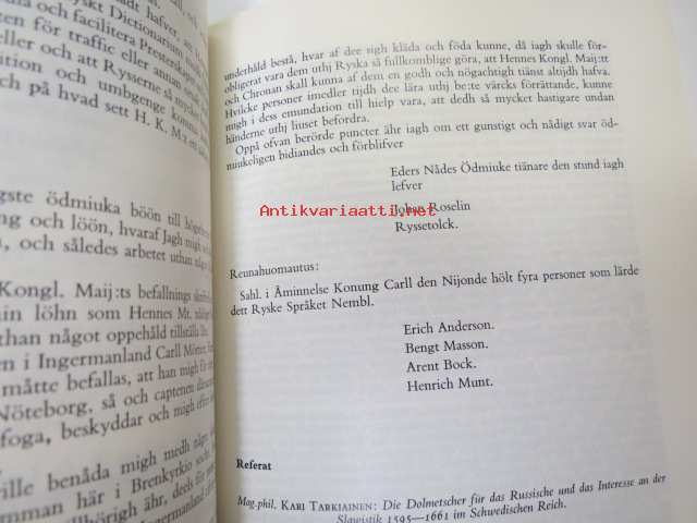 Venäjäntulkit ja slavistiikan harrastus Ruotsin valtakunnassa vv. 1995-1661 -russian language interpreters in Sweden / Swedish territories
