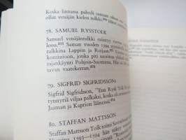 | Saatavilla | 1 kpl | | Julkaisuvuosi | 1969 | | Sivuja | 136 | | Kunto | K3 | | Sidonta/painoasu | Nidottu (pehmeäk.) | | Kielet | Suomi, Ruotsi |