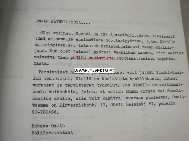 Suzuki DR 125 S -moottoripyörän käsikirja