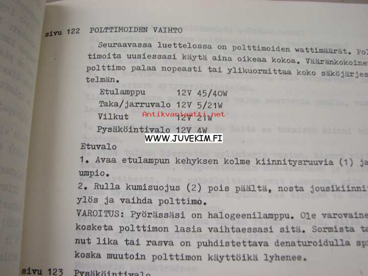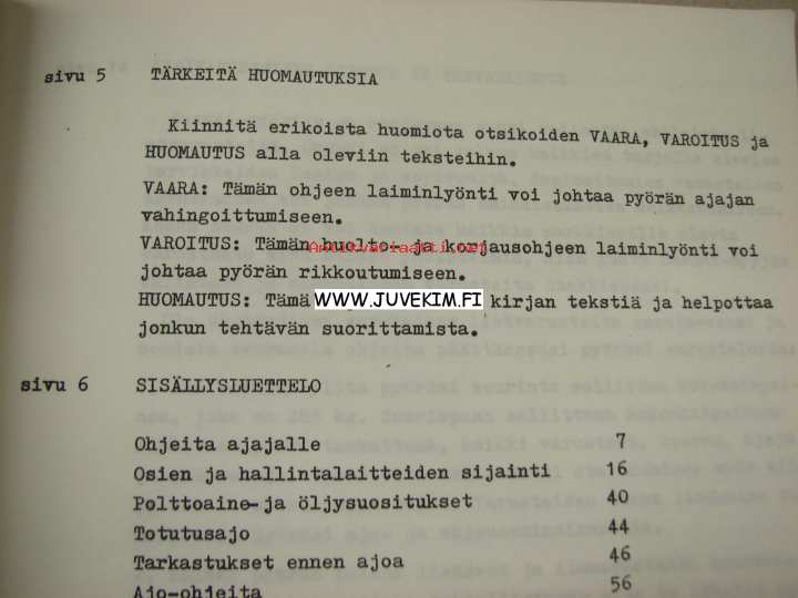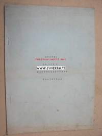 | Saatavilla | 1 kpl | | Julkaisuvuosi | 19?? | | Sivuja | 25 | | Kunto | K2 | | Kulunut | | Sidonta/painoasu | Muu | | Kielet | Suomi |