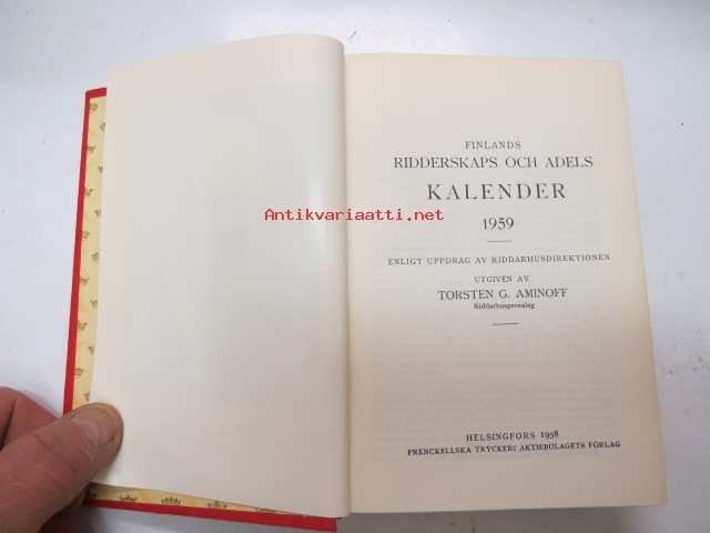 Finlands adelskalender - Finlands ridderskaps och adels kalender 1959 -aateliskalenteri -calendar of finnish nobility