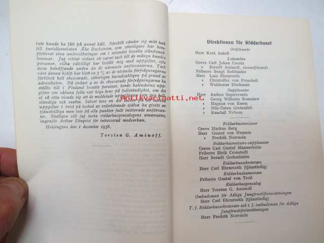 Torsten G. Aminoff, Riddarhusdirektionen, 195812 x 16 cm.