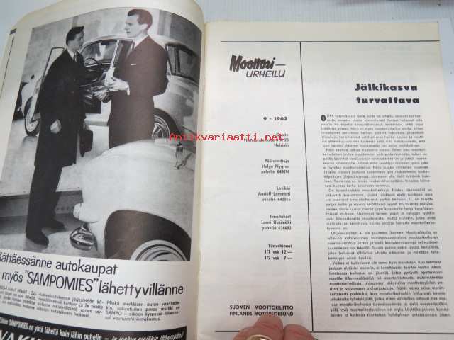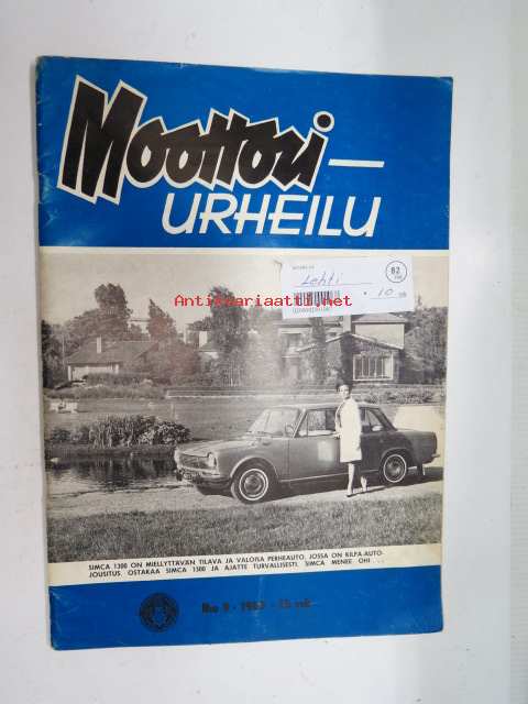 Moottoriurheilu / Moottori-urheilu 1963 nr 9, sis. mm. seur. artikkelit / kuvat / mainokset; Kansikuva Simca 1300, MM-Pyynikki, Mestareiden muotokuvia - Hans-Georg Anscheidt - Hugh Anderson - Jim Redman - Mike Hailwood, Tarkat paikat Ahvenistolla, MZ ES 150, GP made in England, ym. -motoring magazine21 x 30 cm.