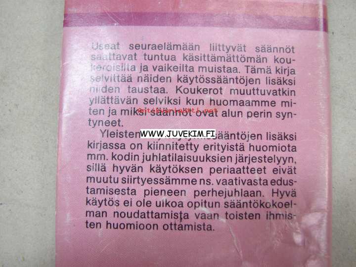 | Saatavilla | 1 kpl | | Julkaisuvuosi | 1981 | | Sivuja | 130 | | Painos | 951-35-2581-3 | | Kunto | K2 | | Sidonta/painoasu | Nidottu (pehmeäk.) | | Kielet | Suomi |