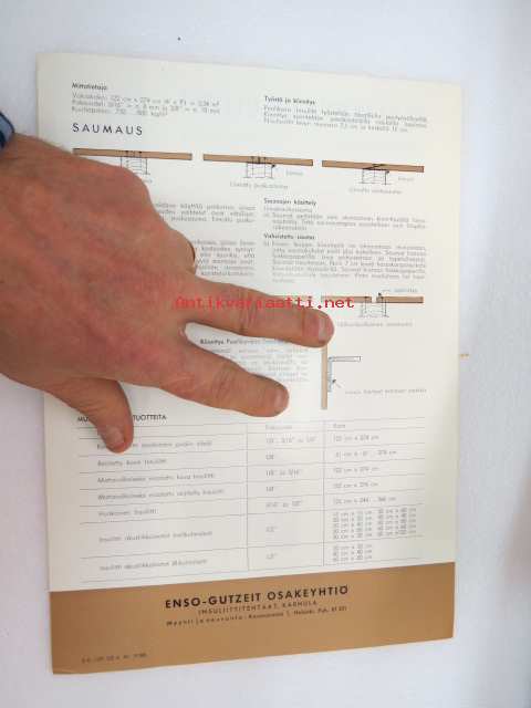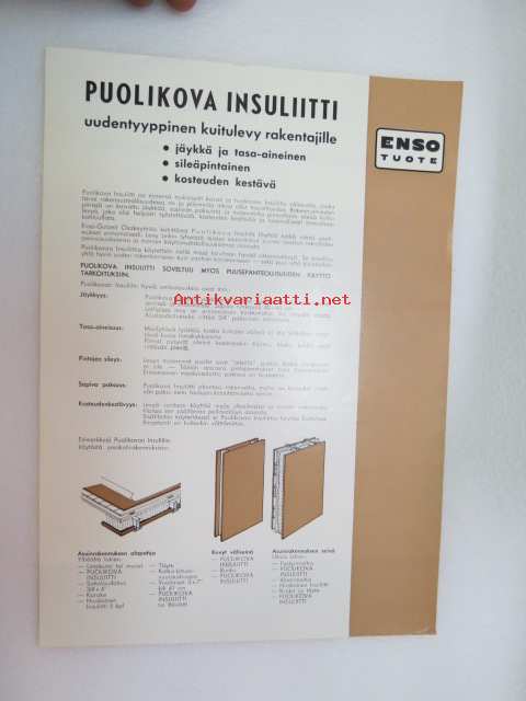 Enso-Gutzeit Oy - Puolikova insuliitti - kuitulevy -myyntiesite / brochure, board