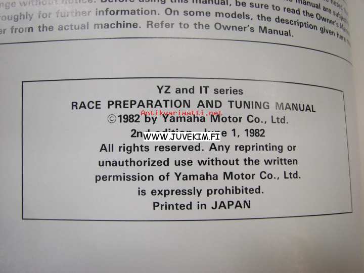 Yamaha race preparation and tuning manual -säätö- ja viritysohjekirja englanniksi