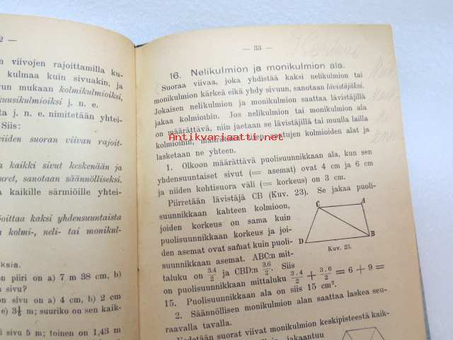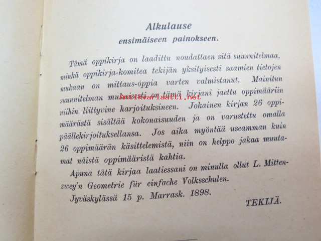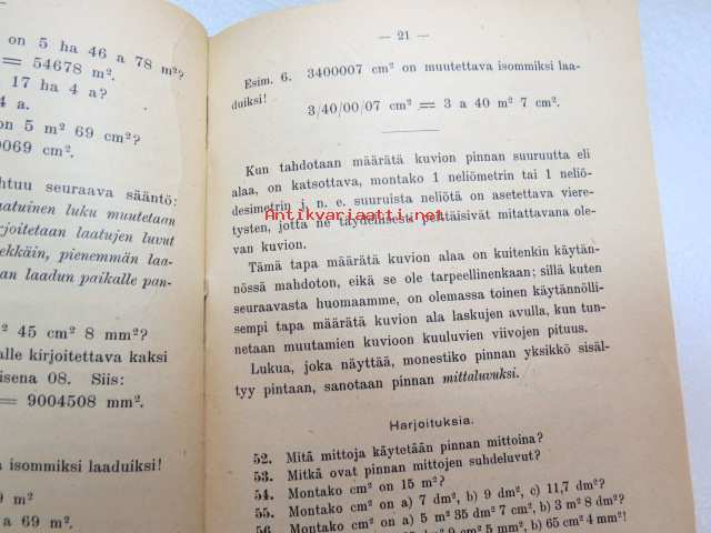 Kansakoulun mittaus-oppi -school book